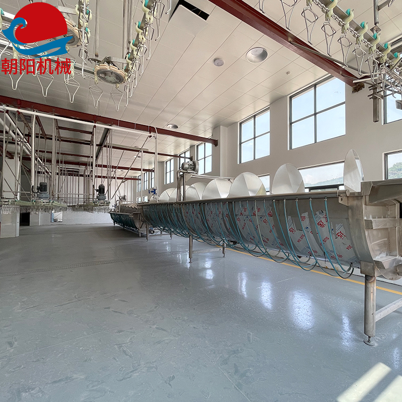 →割爪→轉(zhuǎn)掛→開(kāi)膛→掏內(nèi)臟→割頭→胴體清洗→預(yù)冷→胴體瀝干