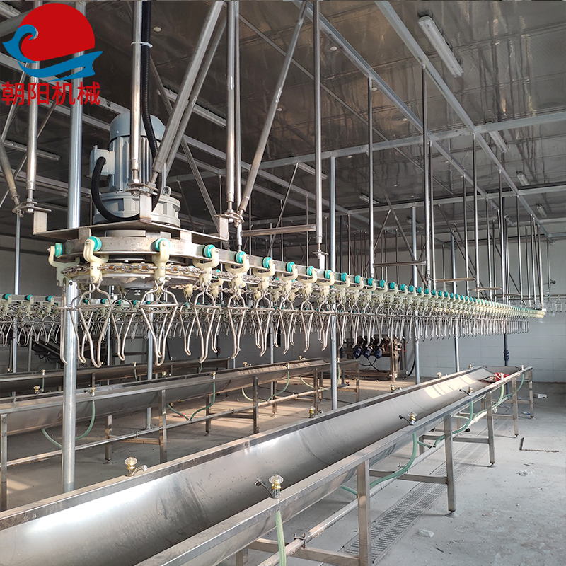 雞宰殺之前,需要人工掛雞,然后用90v電麻機(jī)把雞電麻之后人工宰殺,瀝血,瀝血時(shí)間4-5分鐘,瀝血完成之后進(jìn)入浸燙池浸燙2分鐘左右,浸燙溫度在58-61攝氏度,浸燙溫度可以根據(jù)雞的生長(zhǎng)周期來(lái)調(diào)整溫度,浸燙池的尺寸是根據(jù)客戶的宰殺量來(lái)定制。